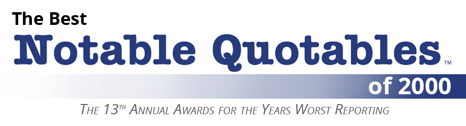 Welcome to the Media Research Center's annual Categorys issue, a compilation of the most outrageous and/or humorous news media quotes from <year>.