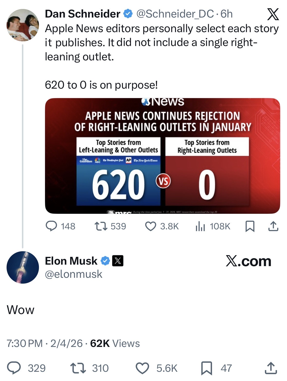 Elon Musk’s one-word verdict, posted in response to our latest special report on Apple News’ blackout of conservative media, says it all.